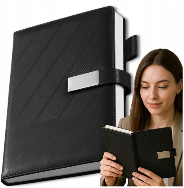 Notesz Tervező Jegyzettömb A5 Füzet Napló Ajándékba Fekete Bőr (Notes planer organizer segregator A5 czarny)ALLEGRO