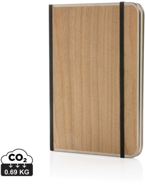Kifinomult választás. Fémkötésű, rugalmas szalaggal és elegáns FSC® fa borítással. Belül 80 lap (160 oldal), 80 gsm, vonalas, fehér papírral. FSC® mix kraft tasakban. Stílusos választás!